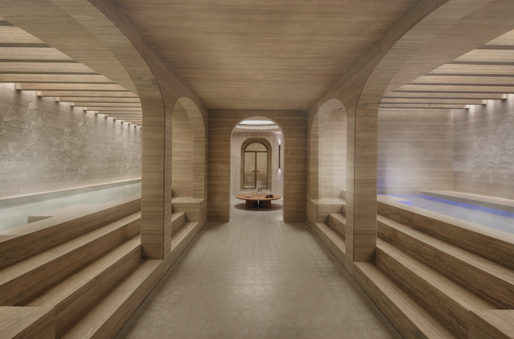 Au cœur de la ville éternelle, le Palazzo Salviati Cesi Mellini abrite le Six Senses Rome, le premier hôtel urbain de la marque hôtelière de luxe en Italie. Véritable refuge urbain où travertin, bois naturel, arches romaines et textures gravées s’unissent pour créer une atmosphère apaisante. L’architecture de Patricia Urquiola transforme chaque espace en un cocon méditatif. Les jeux de volumes, la vapeur des bassins et les lignes épurées deviennent encore plus expressifs grâce aux diverses sources LED, qui révèle les reliefs et adoucit les contours.