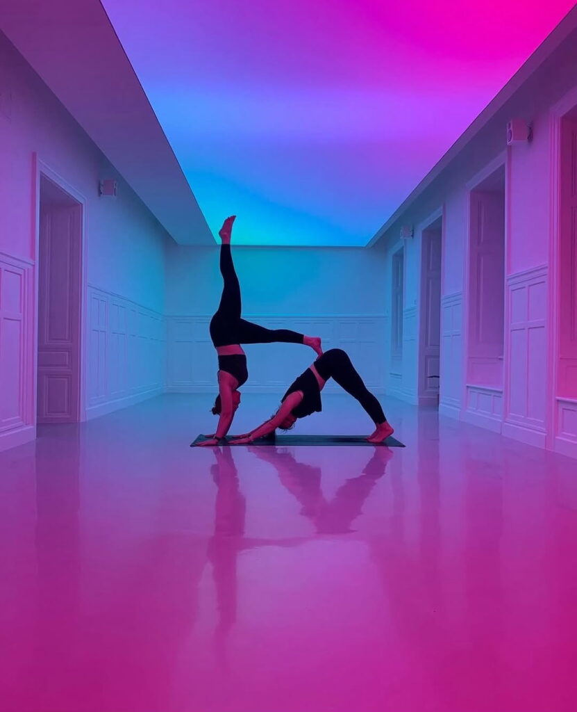 Bienvenue dans un lieu où la lumière guide le mouvement, où chaque respiration s’accompagne d’une couleur, et où le yoga devient une véritable expérience sensorielle.