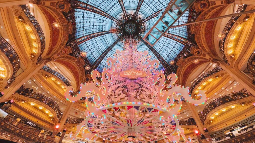 Au cœur des Galeries Lafayette, sous la célèbre coupole Art Nouveau, trône un sapin de Noël monumental qui dépasse l’imagination. Haut de plusieurs mètres, il s’impose comme le point central de la féerie de Noël. Chaque année, le sapin est décoré selon un thème unique, mêlant tradition et créativité, pour offrir une expérience visuelle exceptionnelle. Pour ce 130e anniversaire, le thème choisi reflète un mélange de nostalgie et d’innovation, célébrant les décennies de magie des fêtes aux Galeries Lafayette.