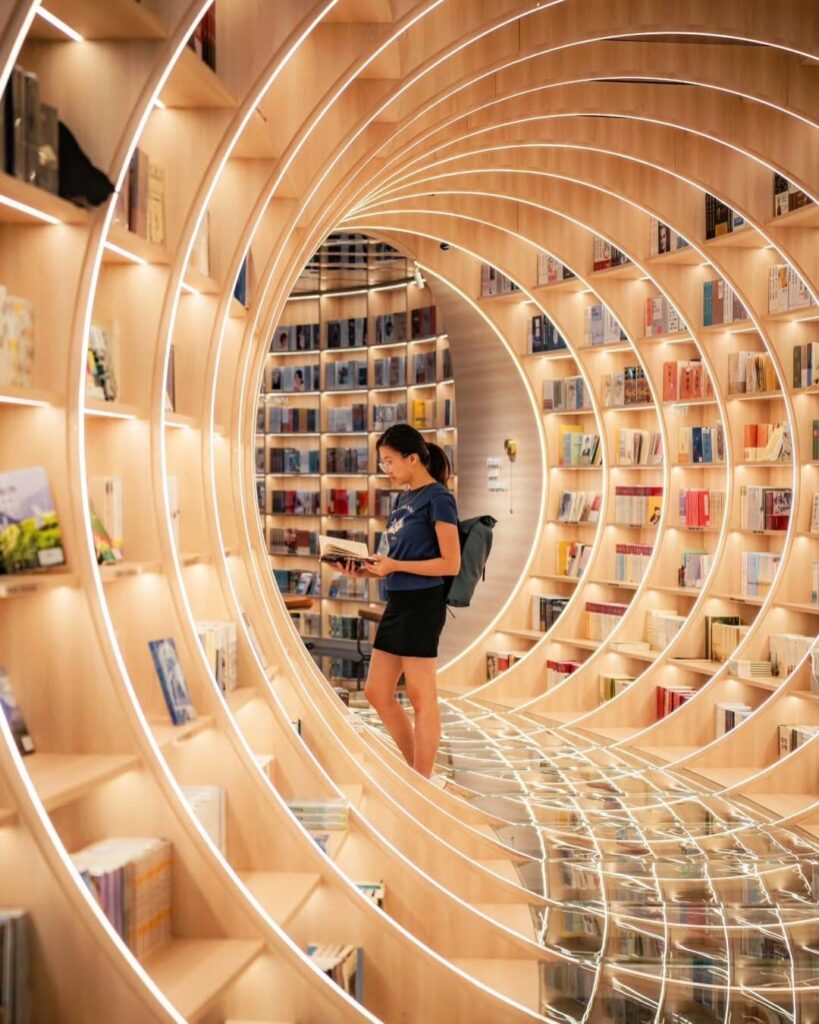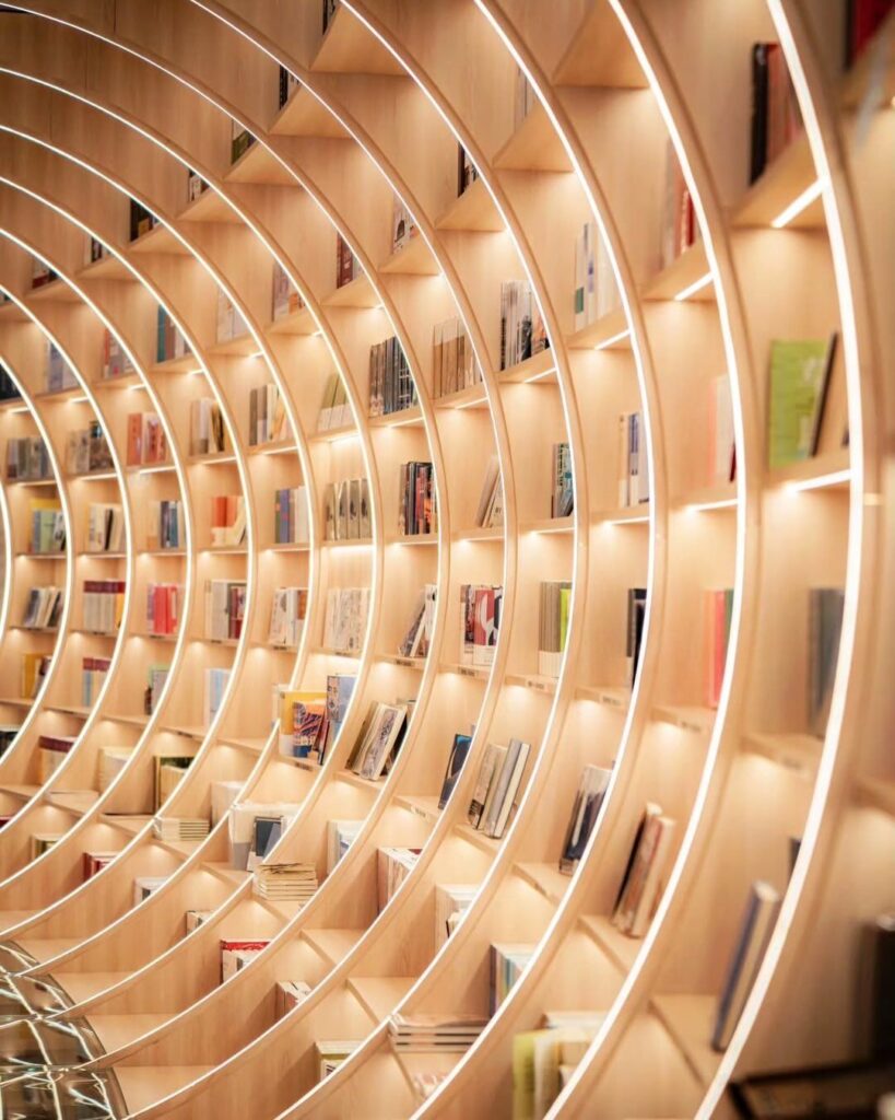 Yuxin Bookstore illustre parfaitement une tendance actuelle dans le design d’espace : utiliser les sources LED non seulement comme luminaire mais comme un véritable outil architectural. Elles permettent de structurer, d’agrandir visuellement et de transformer un lieu sans recourir à des installations lourdes.