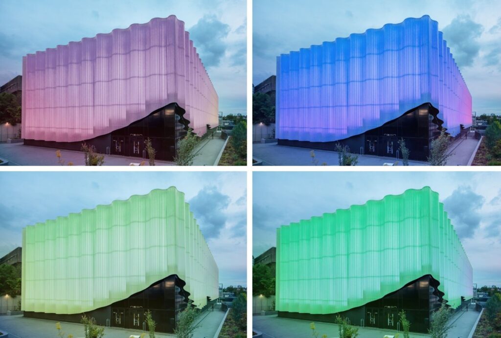 Luminaires LED RGBW : utilisés pour créer des lignes de lumière continues qui soulignent l’architecture et dessinent des perspectives immersives.